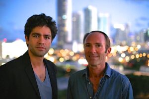 Peter Glatzer and Shepard Fairey at SHFT's 'Elementals' exhibit in Miami