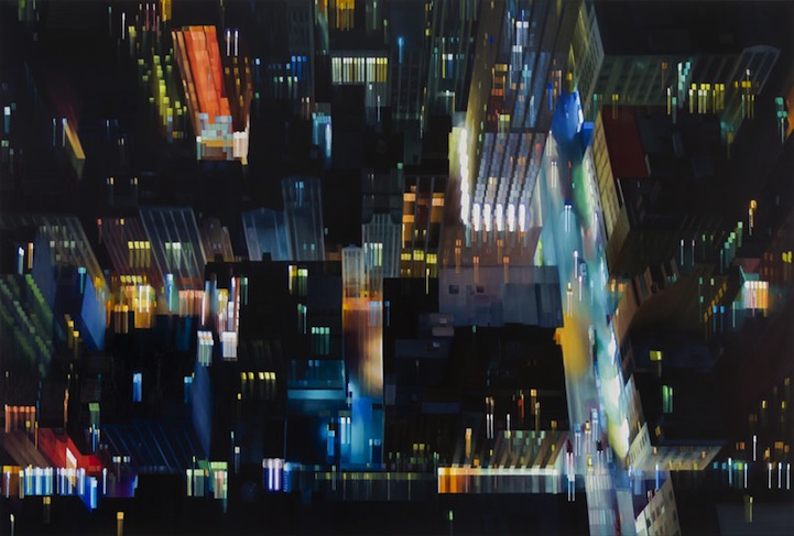 We were excited when New York-based artist Alexandra Pacula contacted us to share information about her first solo show, Luminous Heights, at Gallery Henoch. The collection features rare and stunning cityscape paintings of New York City, with a bit of a twist. The artist beautifully blurs city lights from buildings, street lamps, taxi cabs, and bridges to create an abstract portrayal of the urban environment from various perspectives.