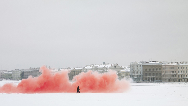 At this year’s Venice Biennale, Russian-born artist Anton Ginzburg takes viewers on a hypothetical journey to Hyperborea. At the Back of the North Wind is a photo series and video installation documenting his travels “beyond the Boreas” to the virgin forests of Oregon, from the run-down palaces and museums of St. Petersburg to the eerie ruins of the Gulags. Using clouds of red smoke as a metaphor for the collective unconscious, Ginzburg creates a fantastical dreamscape of a mythical place.