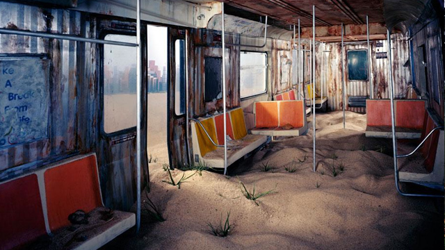 Growing up in tornado-prone western Kansas, Lori Nix witnessed her fair share of natural disasters. Add to that her childhood interest in disaster movies and we have a women who says she may be “a little obsessed” with the apocalypse. In her latest series, “The City,” the photojournalist-turned-artist imagines a post-apocalyptic urban environment that is emptied of human inhabitants. Eschewing digital manipulation in favor of a more hands-on approach, Nix builds tiny, painstakingly detailed dioramas using cardboard, foam, glue and paint, then photographs the scenes with an 8 x 10” camera.