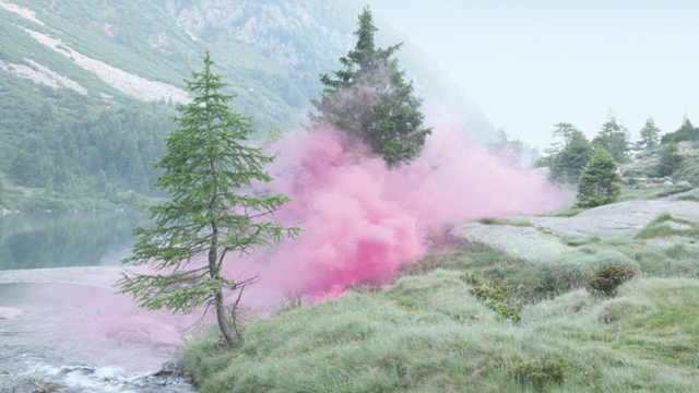 In Silence/Shapes, Italian artist Filippo Minelli juxtaposes violence and beauty by igniting homemade smoke bombs in romantic landscapes, then capturing the ephmereal explosions on camera. The ongoing series was launched in 2009 and continued recently with a commission from Storyline Studios, Norway’s largest movie firm, who hired the artist to create four Silence/Shapes photos for the company’s new ID. Those photos are the first four you see above.