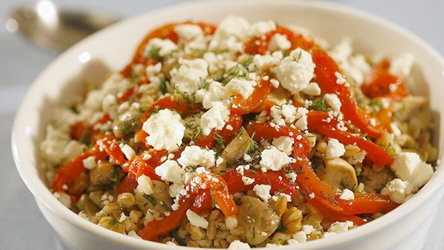 But the one that really caught our eye is the farro salad with mushrooms, dill and feta (pictured), which gets bonus marks for including cheese.