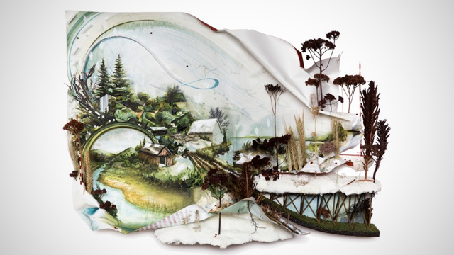 From subject matter to materials, nature informs the work of Minnesota-based artist Gregory Euclide. From his home outside of Minneapolis, Euclide makes mixed-media landscape works that incorporate paper, found objects, and natural elements. The pieces are based on his memories and experiences of the outdoors. Euclide explained his process to Paper Darts Magazine: