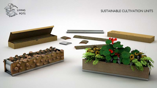 The cultivation units are constructed from bent reclaimed metal pieces and industrial scrap wood, and can be used for growing plants, herbs and mushrooms in both personal and industrial applications. Driven by the objective of reducing both emissions and wood consumption, the Living Pots are flat-packed for easy shipping and can be assembled in a snap.