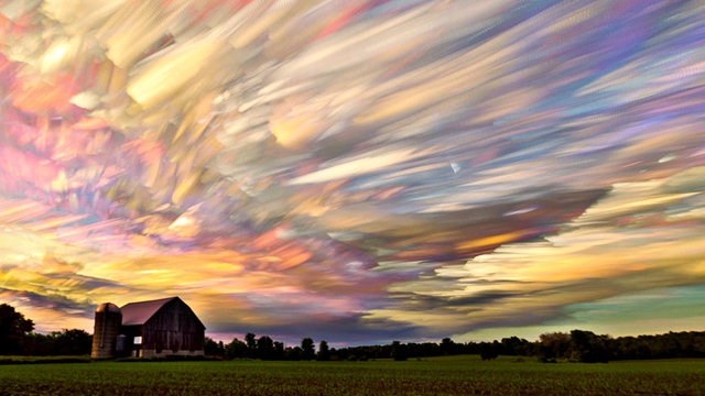 From his home in Ontario, Canada, Matt Molloy takes sky photography to a whole new level of awesome. After shooting single-spot, time-lapse images of rural landscapes around his home, he stacks the images atop one another to create an amazing painterly effect.