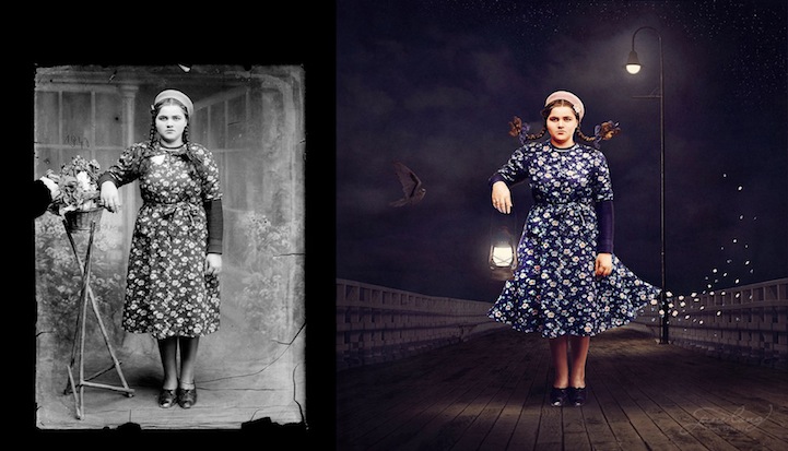 The project was initially intended as a way to brush up on her retouching skills, but when she came across the Costică Acsinte Archive on Flickr, Long was hooked. “I became fascinated with the images and their subjects. I wanted to bring them to life. But more than that I wanted to give them a story,” explains Long. “I will probably never know the real stories of these people but in my mind they became characters in tales of my own invention…star crossed lovers, a girl waiting for her lover to come home, boys sharing a fantasy, innocent children with a little hint of something dark.”