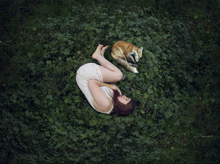 Madrid-based photographer Elena del Palacio crafts images that conjure ethereal, dream-like scenarios in the wilderness. Her vivid pictures feature young women who are surrounded by the vast beauty of nature. They’re shown contemplating the world around them as well as being at rest. Babbling brooks, grassy fields, and gigantic tree roots become their bed in these peaceful tales.