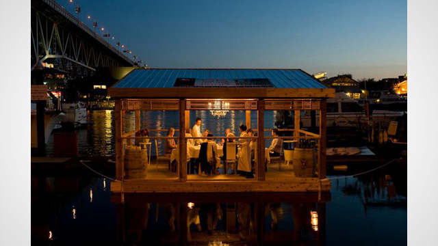 Designed by the Goodweather Collective, the 20X8 foot floating structure seats up to 12 guests every evening, who pay $215 for a six-course meal, complete with six wine pairings, from the award-winning C Restaurant.
