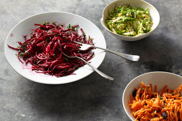 When we think of the word “slaw,” the first thing that comes to mind is a withered pile of shredded cabbage sitting sadly in mayonnaise soup. Well, forget that image. In this week’s New York Times Magazine, Mark Bittman dishes out some ideas for slaw that shatter any perconceptions of what shredded veg salad can be. From fennel to brussel sprouts, celery to seaweed, there’s no limit to slaw creativity.