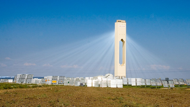 Photo: Abengoa’s PS 10, the world’s first commercial solar tower, outside of Seville, Spain. (afloresm / Flickr Creative Commons)