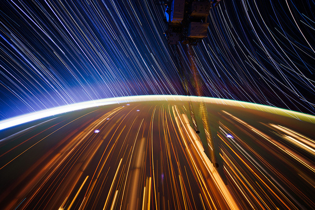 These stunning space photos started circulating around the web back in the summer, but I guess we were too busy having a great time to notice. The images were shot in spring 2012 by NASA astronaut Don Pettit, who was on a mission aboard the International Space Center. Shot at long exposures from 240 miles up in space, the photos show the paths made by stars and earth lights over 10 to 15 minutes.