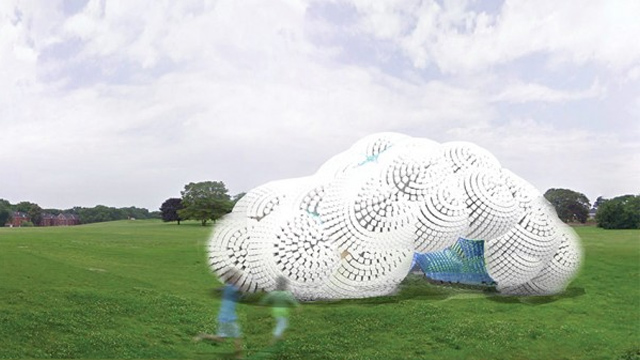 Riffing on the image of daydreaming in the park, designers Jason Klimoski and Lesley Chang aim to create a mesmerizing, cloud-like structure made from discarded milk jugs and water bottles. Each bottle will be lightly filled with blue-tinted water to create a cool glow when sunlight hits it.