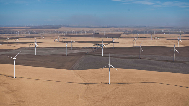 Photo: Biglow Canyon wind farm in Sherman County, OR has a total capacity of nearly 325 MW, or enough to meet the electricity needs of about 100,000 US homes. (Siemens AG)
