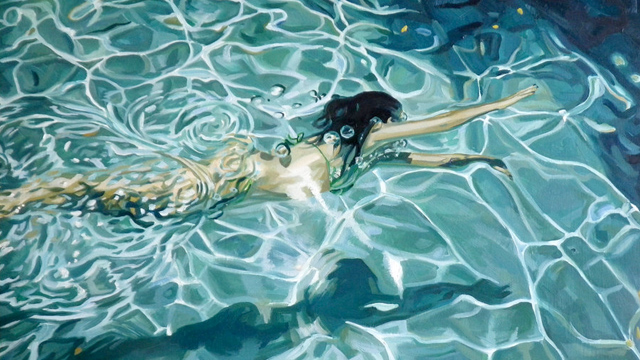 Canadian artist Heather Horton has a widely varied painting portfolio that includes these beautiful portraits of faceless female swimmers, rendered in warm, soothing colors and sumptuous textures. The works feature light reflections and distortions that realistically capture the fluid, flowing feeling of swimming underwater. Each composition appears as a piece of a larger picture, with the solitary figures moving endlessly through an infinite pool.