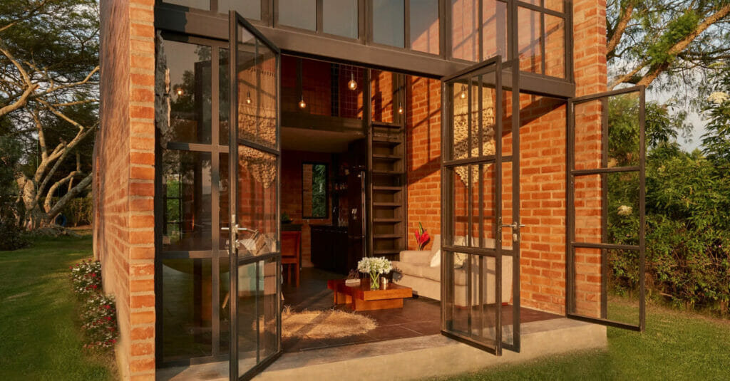 Concrete, glass, metal, and brick. These are the materials used to create this 700-square-foot retreat in the heart of Napoles, Ecuador. Located in a rural region one hour outside of Quito at the base of the Andes Mountains, the compact structure is a stylistically minimalist and environmentally responsive weekend home for an artistic-minded woman and her family.
