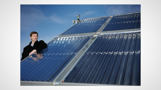 Photo: Daniel Arneman, an energy expert at the University of North Carolina, on the solar-paneled roof of Morrison Residence Hall. (University of North Carolina)