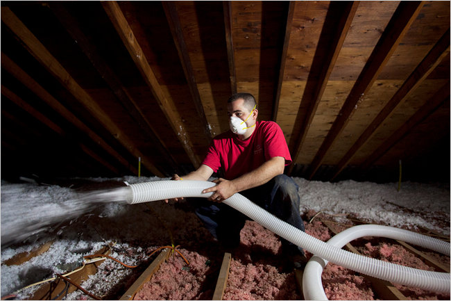 Photo: Insulation being sprayed in the attic of a home in Flourtown, Pa. (Ryan Collerd / NYT)