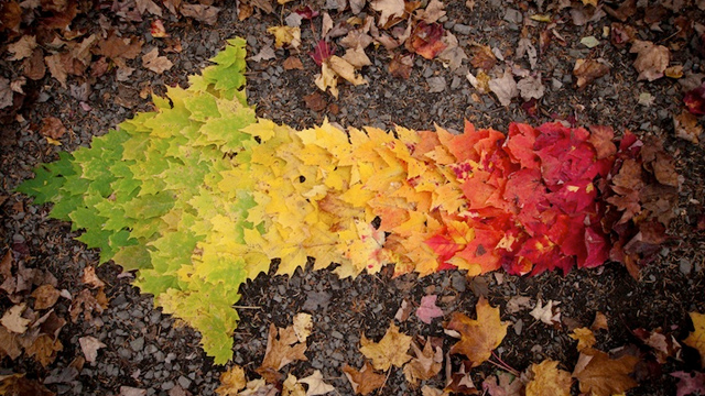 The autumn season is now in full gear, bringing with it chilly mornings, harvest festivals, bird migrations, and, of course, dazzling foliage. The other day, My Modern Met celebrated the harvest season by assembling this awesome collection of photos that show multi-hued leaves arranged in rainbow-like gradients. From an arrow created with maple leaves to a circle of leaves arranged by Pantone color, these images show spectacular fall colors at their peak.