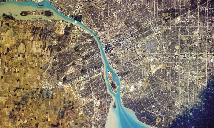 1. The Detroit River bisects the metropolitan areas of Detroit, Michigan (right) and Windsor, Ontario: “Two countries, one river,” says Hadfield.