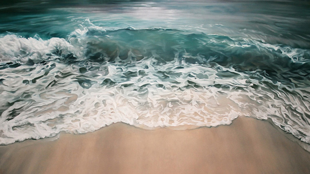 Forman’s latest collection of drawings, inspired by a trip to the Maldives in September 2013, continues with the climate change theme. As the lowest-lying nation in the world, the Maldives are especially vulnerable to the effects of global warming, a point Forman highlights beautifully with these hyper-realist finger paintings of the rising seas.