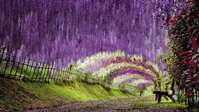 Purple haze! Crazy Japanese flower park features tunnel of hanging wisteria