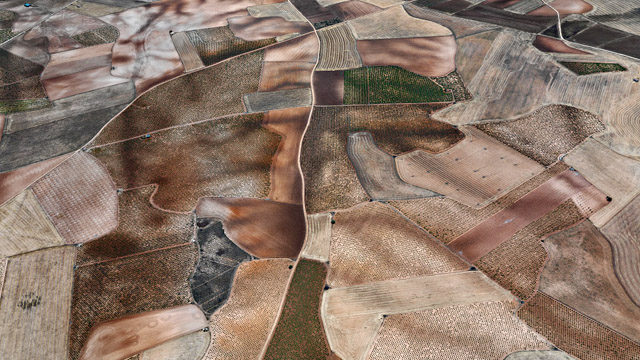 Shot from the sky, the farmlands of northeastern Spain look like abstract paintings.