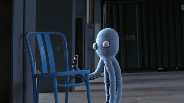 Watch a stop-motion "quadropus" turn the city blue