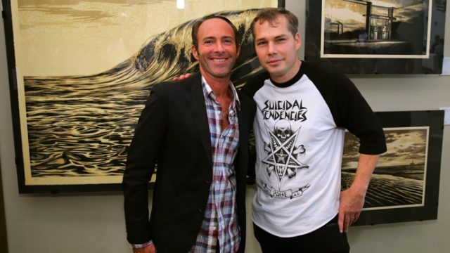 Peter Glatzer and Shepard Fairey at SHFT's 'Elementals' exhibit in Miami