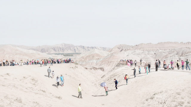 Images of tourists in the ancient, arid landscapes of northwestern China
