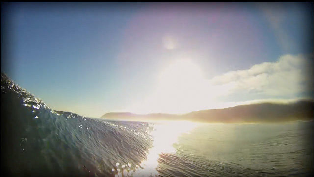 With a camera on his head, surfer/filmmaker Cyrus Sutton catches some nice waves at sunrise.