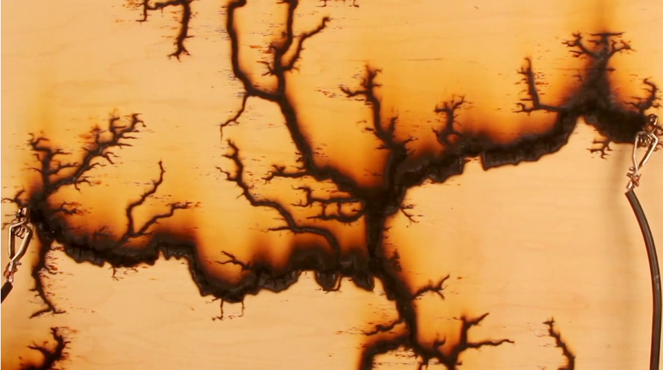 Artist Melanie Hoff uses power to make electric patterns on plywood